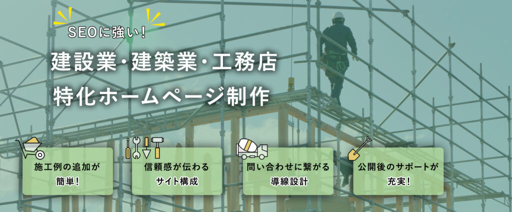 建設業界に重要な施工事例の追加が簡単!同業界での沢山の制作実績に基づくご提案をいたします!