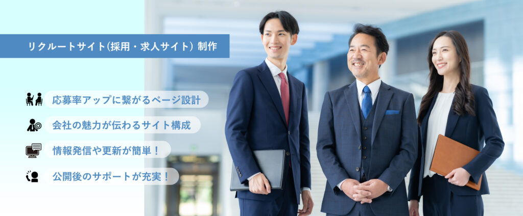 リクルートサイトに必要な機能が盛りだくさん!ページ構成などもおまかせください!